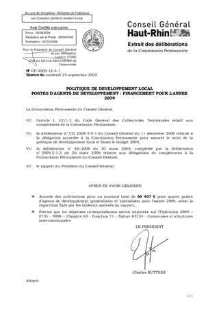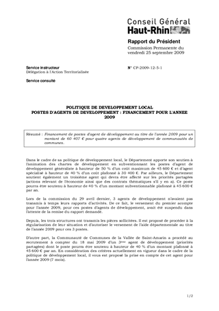 POLITIQUE DE DEVELOPPEMENT LOCAL POSTES D'AGENTS DE DEVELOPPEMENT : FINANCEMENT POUR L'ANNEE 2009