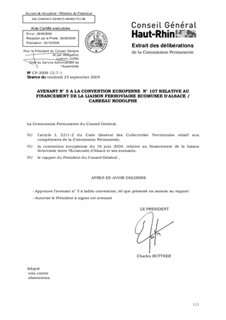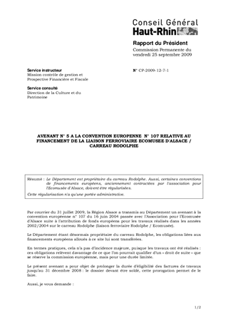 AVENANT N° 5 A LA CONVENTION EUROPENNE N° 107 RELATIVE AU FINANCEMENT DE LA LIAISON FERROVIAIRE ECOMUSEE D'ALSACE / CARREAU RODOLPHE