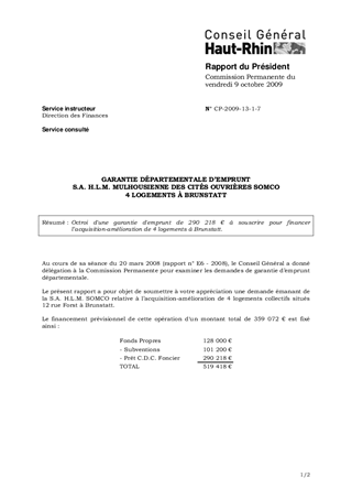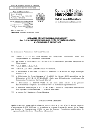 GARANTIE DÉPARTEMENTALE D’EMPRUNT S.A. H.L.M. MULHOUSIENNE DES CITÉS OUVRIÈRES SOMCO 4 LOGEMENTS À BRUNSTATT
