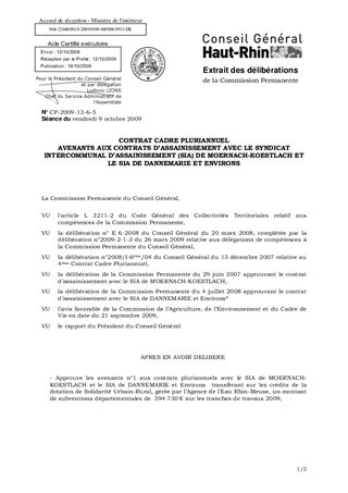 CONTRAT CADRE PLURIANNUEL AVENANTS AUX CONTRATS D’ASSAINISSEMENT AVEC LE SYNDICAT INTERCOMMUNAL D’ASSAINISSEMENT (SIA) DE MOERNACH-KOESTLACH ET LE SIA DE DANNEMARIE ET ENVIRONS