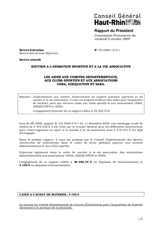 SOUTIEN A L'ANIMATION SPORTIVE ET A LA VIE ASSOCIATIVE LES AIDES AUX COMITES DEPARTEMENTAUX, AUX CLUBS SPORTIFS ET AUX ASSOCIATIONS UDBA, ADEQUATION ET SARA.