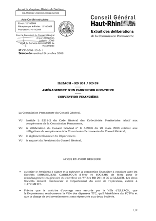 ILLZACH – RD 201 / RD 39 ------ AMÉNAGEMENT D'UN CARREFOUR GIRATOIRE ------ CONVENTION FINANCIÈRE