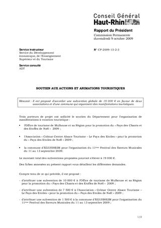 Il est proposé d'accorder une subvention globale de 19 000 € en faveur de deux associations et d'une commune qui organisent des manifestations touristiques.