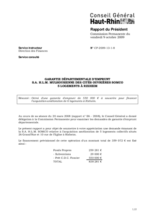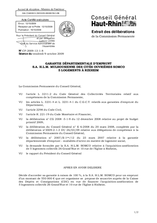 GARANTIE DÉPARTEMENTALE D’EMPRUNT S.A. H.L.M. MULHOUSIENNE DES CITÉS OUVRIÈRES SOMCO 5 LOGEMENTS À RIXHEIM