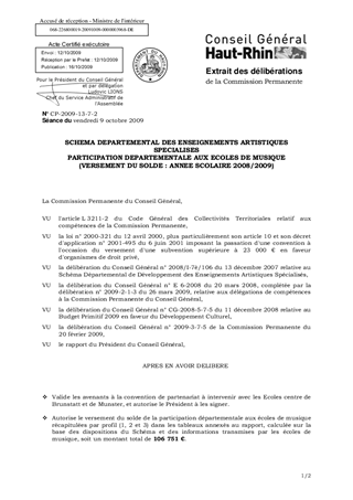 SCHEMA DEPARTEMENTAL DES ENSEIGNEMENTS ARTISTIQUES SPECIALISES PARTICIPATION DEPARTEMENTALE AUX ECOLES DE MUSIQUE (VERSEMENT DU SOLDE : ANNEE SCOLAIRE 2008/2009)