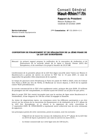 CONVENTION DE FINANCEMENT ET DE RÉALISATION DE LA 2ÈME PHASE DE LA LGV EST EUROPÉENNE