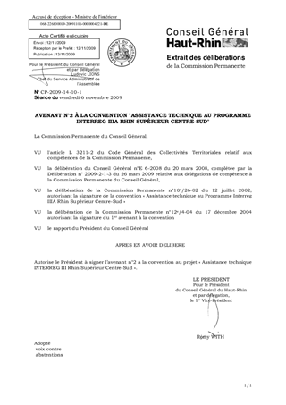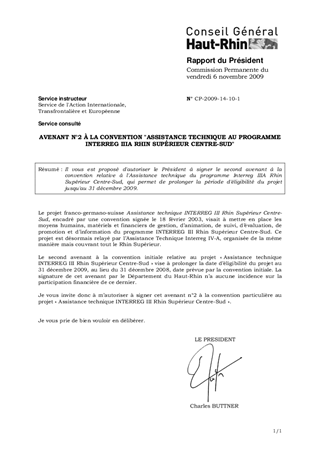 Il vous est proposé d'autoriser le Président à signer le second avenant à la convention relative à l'Assistance technique du programme Interreg IIIA Rhin Supérieur Centre-Sud, qui permet de prolonger la période d'éligibilité du projet jusqu'au 31 décembre 2009.