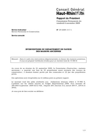 Dans le cadre des interventions départementales en faveur des maisons anciennes, il vous est proposé l'attribution d'aides pour un montant total de 75 900 €.