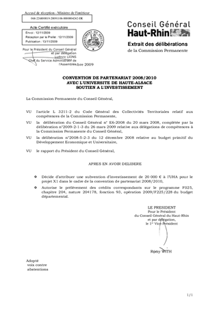 CONVENTION DE PARTENARIAT 2008/2010 AVEC L'UNIVERSITE DE HAUTE-ALSACE SOUTIEN A L'INVESTISSEMENT