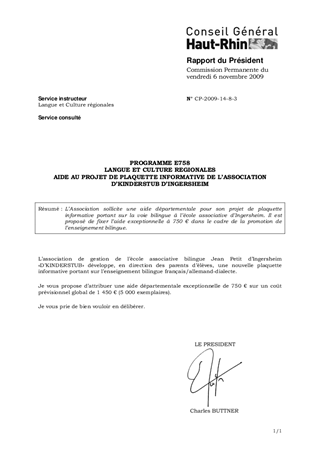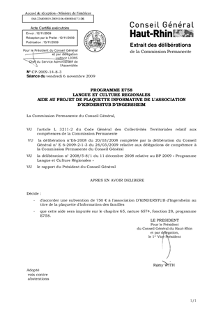 PROGRAMME E758 LANGUE ET CULTURE REGIONALES AIDE AU PROJET DE PLAQUETTE INFORMATIVE DE L’ASSOCIATION D’KINDERSTUB D’INGERSHEIM