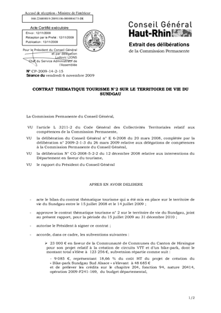 CONTRAT THEMATIQUE TOURISME N°2 SUR LE TERRITOIRE DE VIE DU SUNDGAU