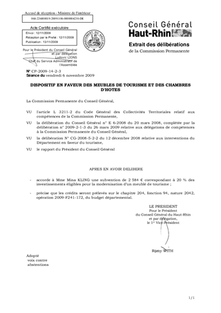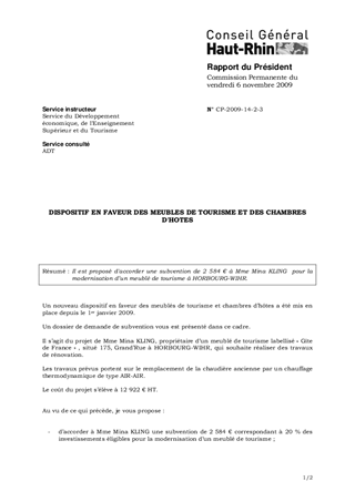 Il est proposé d'accorder une subvention de 2 584 € à Mme Mina KLING pour la modernisation d’un meublé de tourisme à HORBOURG-WIHR.