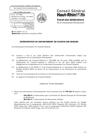 INTERVENTION DU DEPARTEMENT EN FAVEUR DES MUSEES