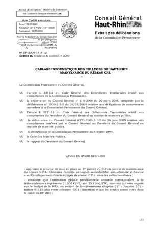 CABLAGE INFORMATIQUE DES COLLEGES DU HAUT-RHIN - MAINTENANCE DU RÉSEAU CPL -
