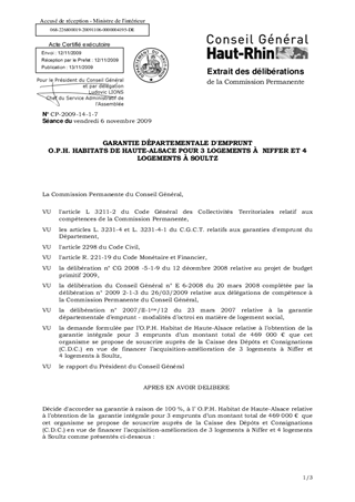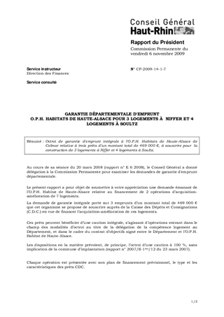 GARANTIE DÉPARTEMENTALE D'EMPRUNTO.P.H. HABITATS DE HAUTE-ALSACE POUR 3 LOGEMENTS À NIFFER ET 4 LOGEMENTS À SOULTZ