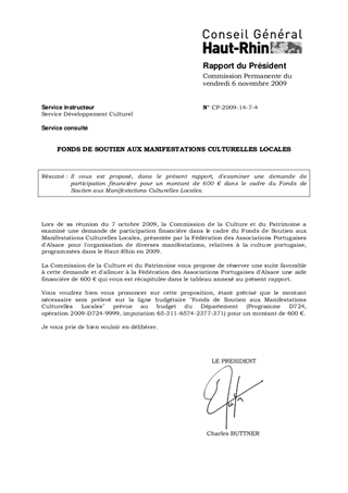 Il vous est proposé, dans le présent rapport, d'examiner une demande de participation financière pour un montant de 600 € dans le cadre du Fonds de Soutien aux Manifestations Culturelles Locales.