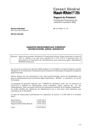 GARANTIE DEPARTEMENTALE D'EMPRUNTOEUVRE SCHYRR -EHPAD- HOCHSTATT