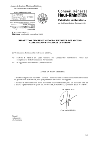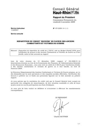 Proposition de répartition du crédit de 2 500 €, voté au Budget Primitif 2009, pour l'attribution de secours à des Anciens Combattants et Victimes de Guerre ou à leur famille, selon la liste annexée au rapport