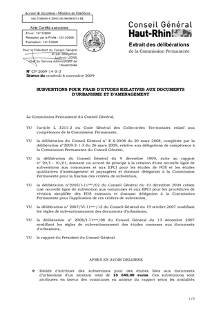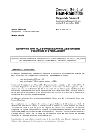 SUBVENTIONS POUR FRAIS D'ETUDES RELATIVES AUX DOCUMENTS D'URBANISME ET D'AMENAGEMENT