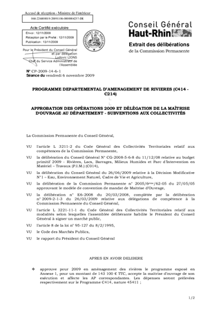 PROGRAMME DEPARTEMENTAL D’AMENAGEMENT DE RIVIERES (C414 - C214) APPROBATION DES OPÉRATIONS 2009 ET DÉLÉGATION DE LA MAÎTRISE D'OUVRAGE AU DÉPARTEMENT - SUBVENTIONS AUX COLLECTIVITÉS