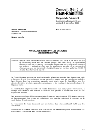 ASSURANCE GRELE SUR LES CULTURES (PROGRAMME C741)