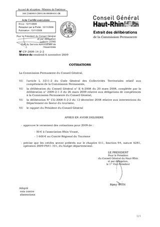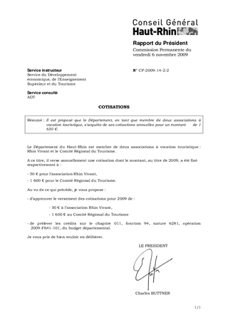 Il est proposé que le Département, en tant que membre de deux associations à vocation touristique, s'acquitte de ses cotisations annuelles pour un montant de 1 650 €.