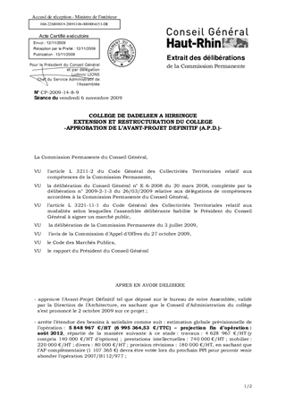 COLLEGE DE DADELSEN A HIRSINGUE EXTENSION ET RESTRUCTURATION DU COLLEGE -APPROBATION DE L’AVANT-PROJET DEFINITIF (A.P.D.)-