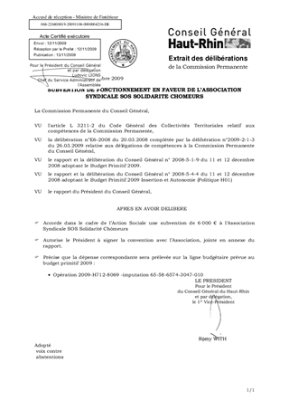 SUBVENTION DE FONCTIONNEMENT EN FAVEUR DE L’ASSOCIATION SYNDICALE SOS SOLIDARITE CHOMEURS