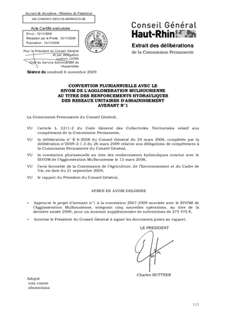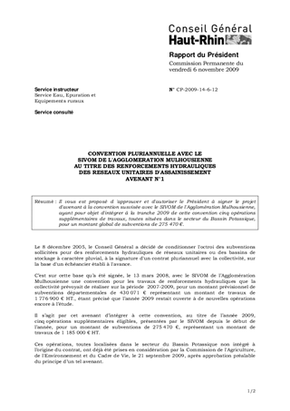 Il vous est proposé d 'approuver et d'autoriser le Président à signer le projet d'avenant à la convention susvisée avec le SIVOM de l'Agglomération Mulhousienne, ayant pour objet d'intégrer à la tranche 2009 de cette convention cinq opérations supplémentaires de travaux, toutes situées dans le secteur du Bassin Potassique, pour un montant global de subventions de 275 470 €.