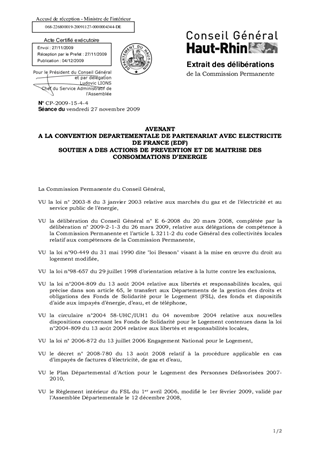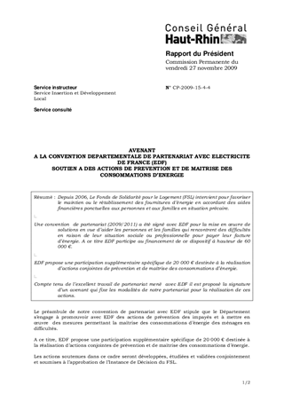 AVENANT A LA CONVENTION DEPARTEMENTALE DE PARTENARIAT AVEC ELECTRICITE DE FRANCE (EDF) SOUTIEN A DES ACTIONS DE PREVENTION ET DE MAITRISE DES CONSOMMATIONS D’ENERGIE