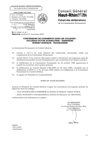 CONCESSIONS DE LOGEMENTS DANS LES COLLEGES : COLLÈGES VICTOR SCHOELCHER – ENSISHEIM, ROBERT SCHUMAN - VOLGELSHEIM