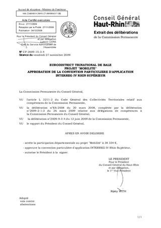 EURODISTRICT TRINATIONAL DE BALE PROJET "MOBILITE" APPROBATION DE LA CONVENTION PARTICULIERE D'APPLICATION INTERREG IV RHIN SUPÉRIEUR