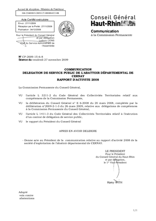 COMMUNICATION DELEGATION DE SERVICE PUBLIC DE L'ABATTOIR DÉPARTEMENTAL DE CERNAY RAPPORT D'ACTIVITE 2008