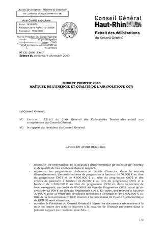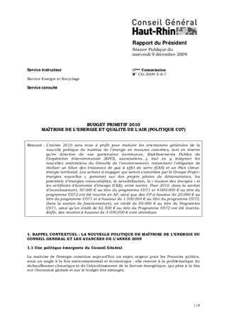 BUDGET PRIMITIF 2010 MAÎTRISE DE L’ENERGIE ET QUALITE DE L'AIR (POLITIQUE C07)