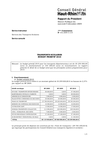 TRANSPORTS SCOLAIRES BUDGET PRIMITIF 2010