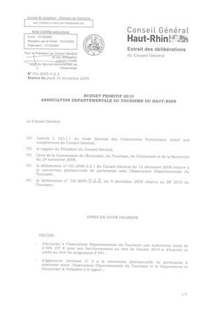 BUDGET PRIMITIF 2010ASSOCIATION DEPARTEMENTALE DU TOURISME DU HAUT-RHIN