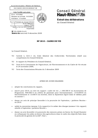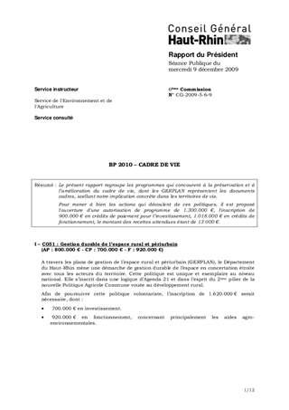 Le présent rapport regroupe les programmes qui concourent à la préservation et à l’amélioration du cadre de vie, dont les GERPLAN représentent les documents cadres, scellant notre implication concrète dans les territoires de vie. Pour mener à bien les actions qui découlent de ces politiques, il est proposé l'ouverture d'une autorisation de programme de 1.300.000 €, l'inscription de 900.000 € en crédits de paiement pour l’investissement, 1.018.000 € en crédits de fonctionnement, le montant des recettes attendues étant de 13 000 €.
