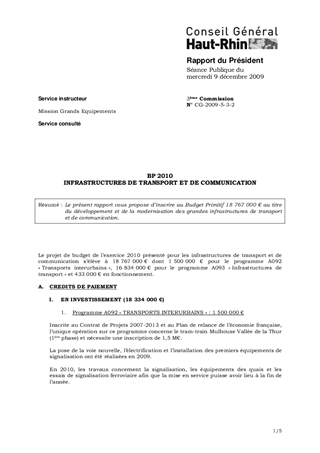 BP 2010 INFRASTRUCTURES DE TRANSPORT ET DE COMMUNICATION
