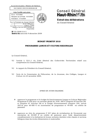 BUDGET PRIMITIF 2010 PROGRAMME LANGUE ET CULTURE REGIONALES