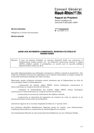 Il vous est proposé d'adopter un nouveau dispositif d'aide aux communes et établissements publics portant sur les bâtiments communaux (mairies et sièges d'EPCI), édifices cultuels et presbytères, en accord avec la nouvelle politique départementale d'aide aux tiers.