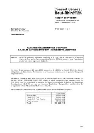 GARANTIE DÉPARTEMENTALE D'EMPRUNT S.A. H.L.M. BATIGERE NORD-EST - 3 LOGEMENTS À ILLFURTH