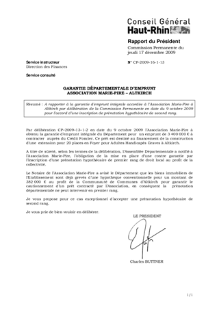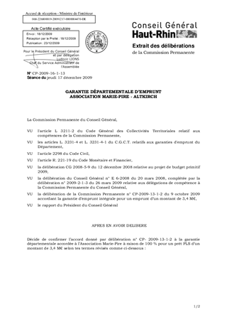 GARANTIE DÉPARTEMENTALE D’EMPRUNT ASSOCIATION MARIE-PIRE - ALTKIRCH