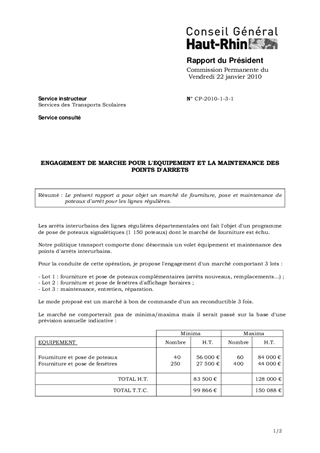 Le présent rapport a pour objet un marché de fourniture, pose et maintenance de poteaux d'arrêt pour les lignes régulières.