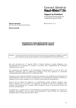 La Communauté de Communes de Cernay et Environs propose de modifier la nature des transports locaux qu'elle organise avec la participation du Conseil Général.
