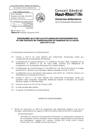 PROGRAMME 2010 DES LACS ET BARRAGES DEPARTEMENTAUX ET DES TRAVAUX DE CONSOLIDATION DU BARRAGE DE LA LAUCH (C614 ET C114)