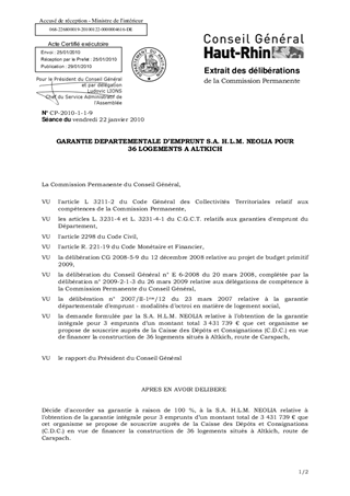 GARANTIE DEPARTEMENTALE D’EMPRUNT S.A. H.L.M. NEOLIA POUR 36 LOGEMENTS A ALTKICH