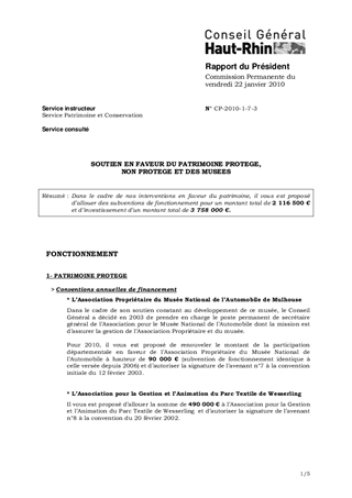 SOUTIEN EN FAVEUR DU PATRIMOINE PROTEGE, NON PROTEGE ET DES MUSEES