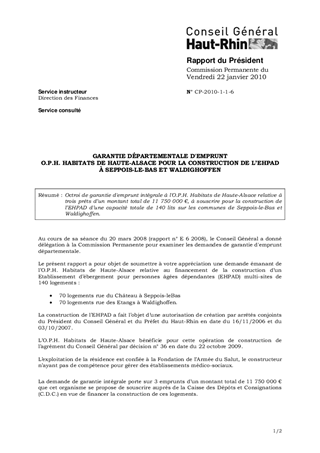GARANTIE DÉPARTEMENTALE D'EMPRUNT O.P.H. HABITATS DE HAUTE-ALSACE POUR LA CONSTRUCTION DE L’EHPAD À SEPPOIS-LE-BAS ET WALDIGHOFFEN