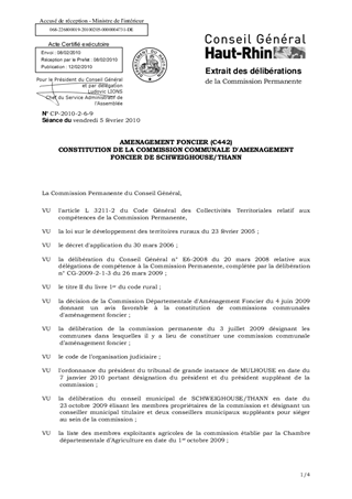 AMENAGEMENT FONCIER (C442) CONSTITUTION DE LA COMMISSION COMMUNALE D'AMENAGEMENT FONCIER DE SCHWEIGHOUSE/THANN