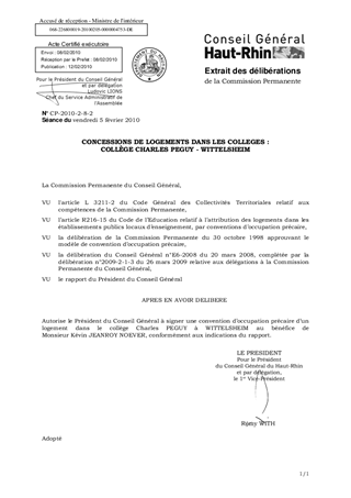 CONCESSIONS DE LOGEMENTS DANS LES COLLEGES : COLLÈGE CHARLES PEGUY - WITTELSHEIM